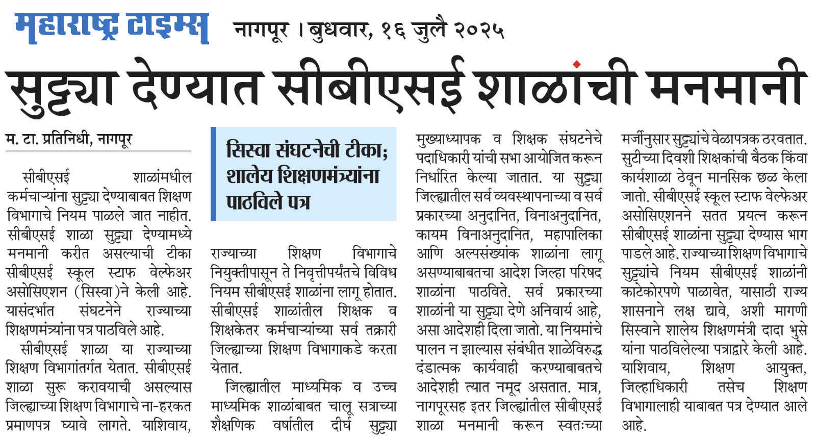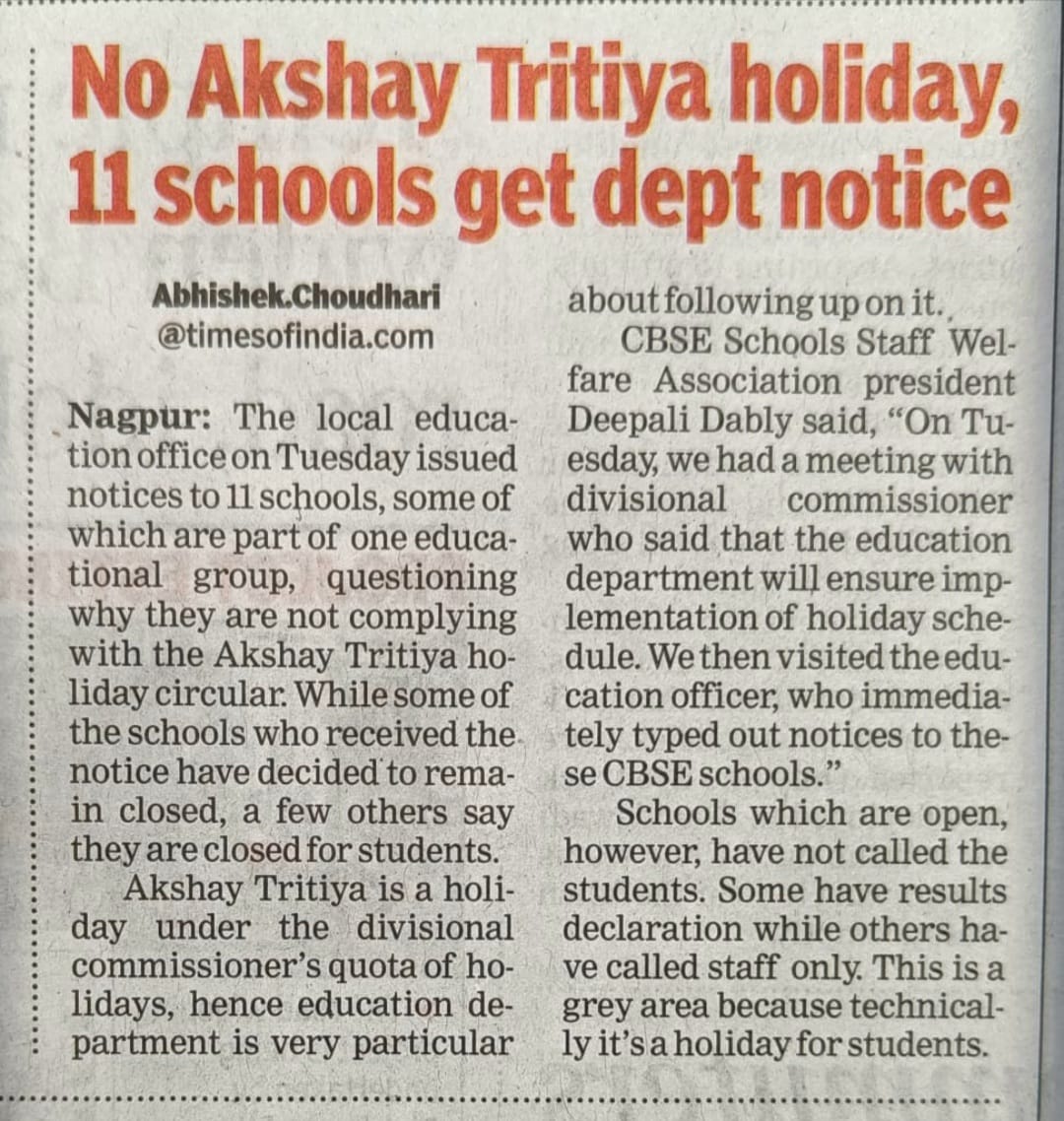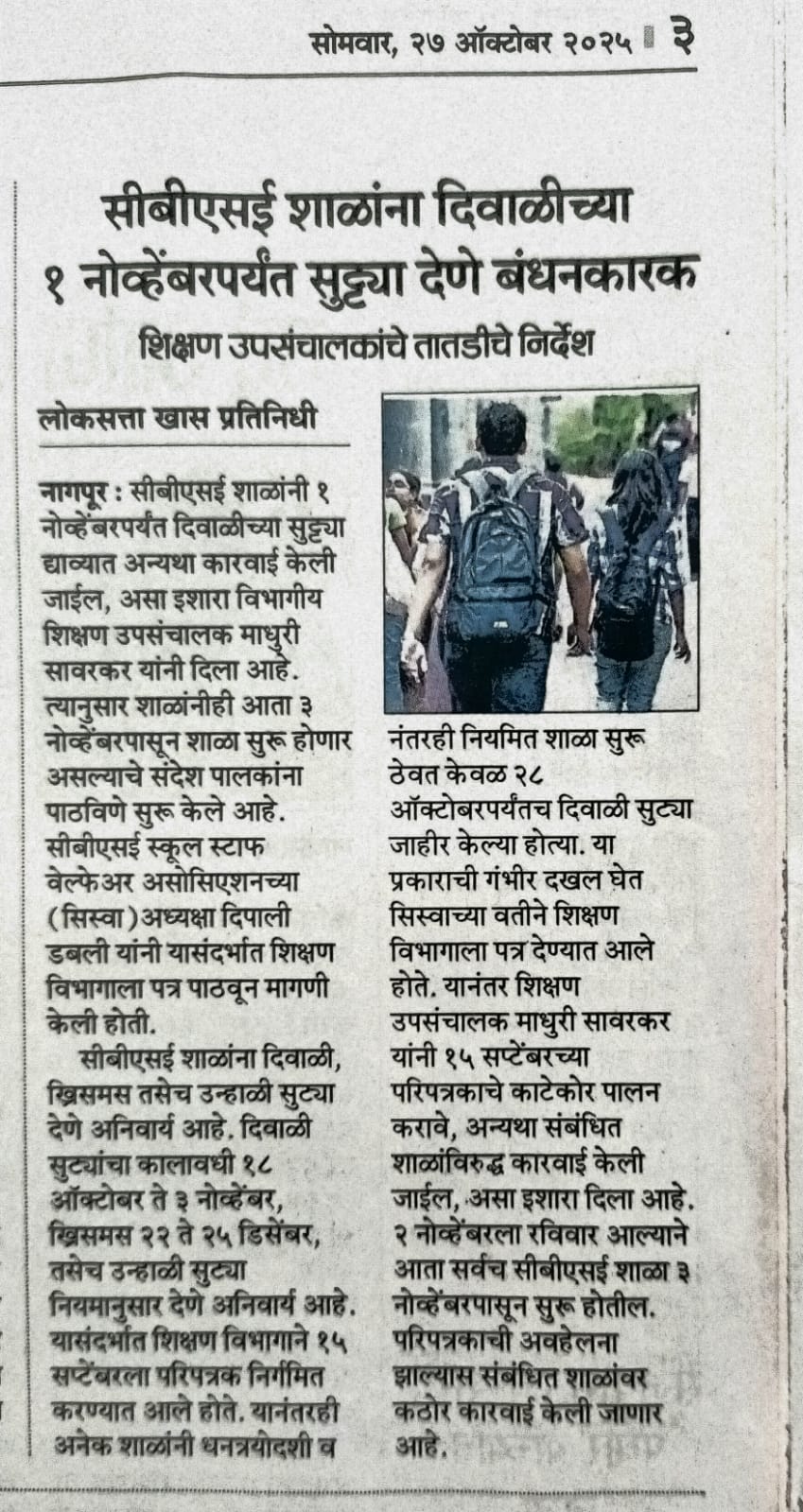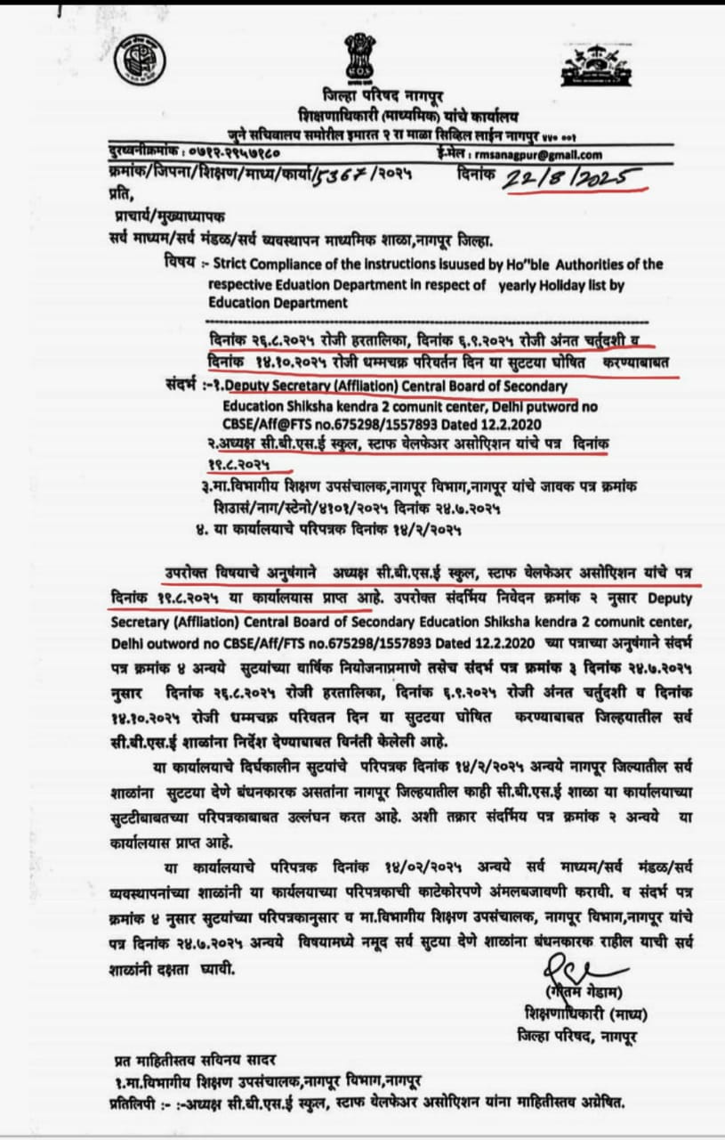 Nagpur: CBSE Schools to Remain Closed on Hartalika Teej, Anant Chaturdashi, and Vijayadashami