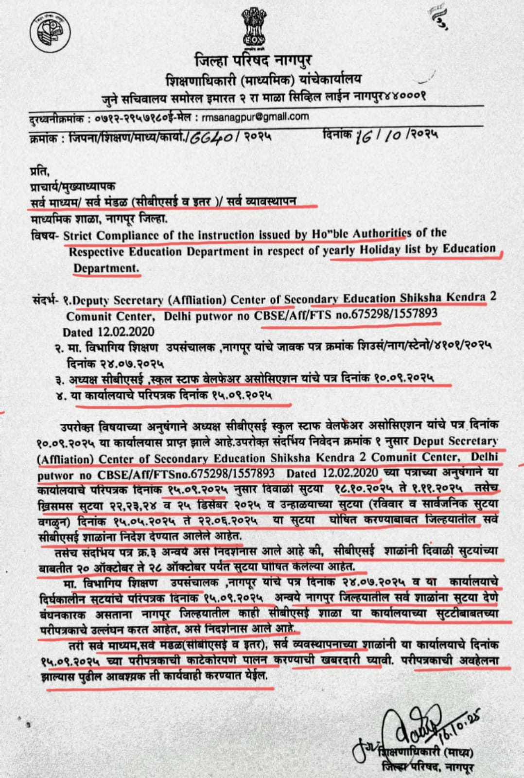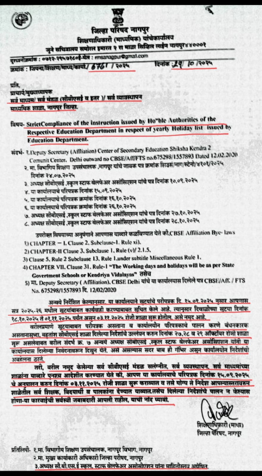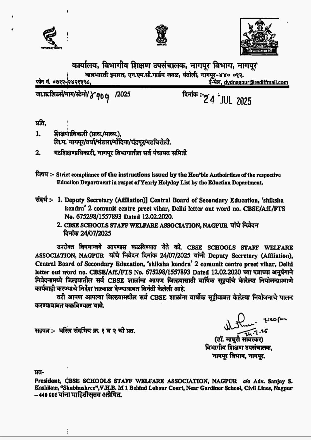 Letter by Hon’ble Deputy Director to all Education Officers of Nagpur District