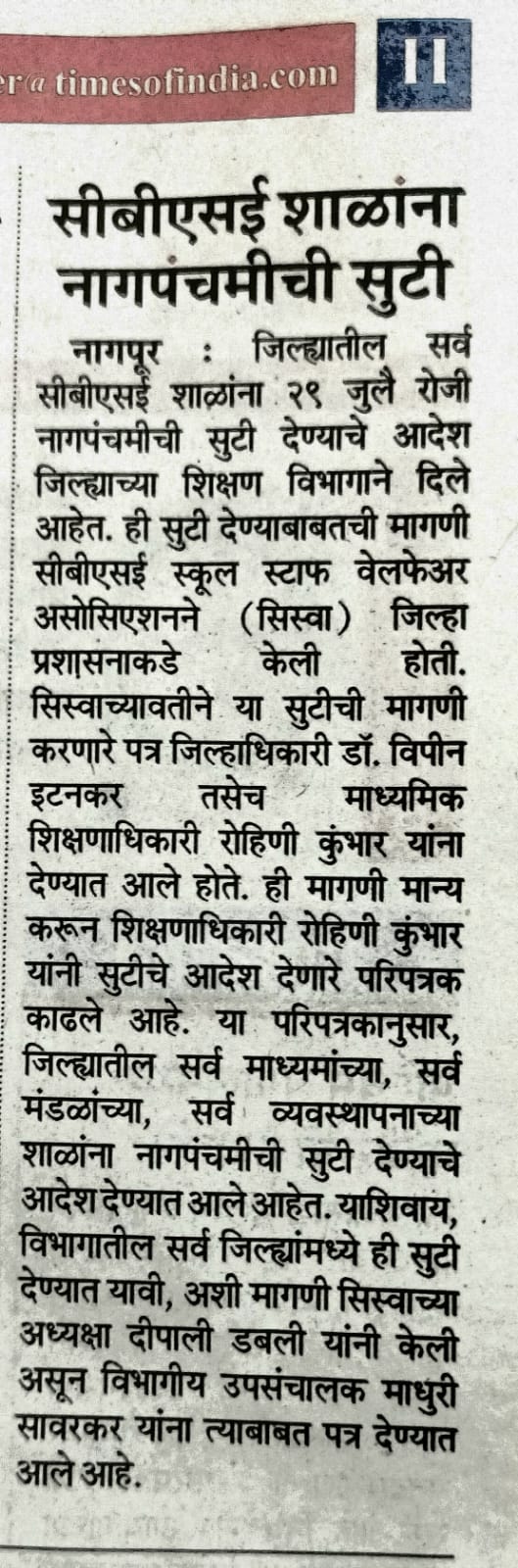 नागपंचमी Holiday Declared by the Hon’ble Education Officer